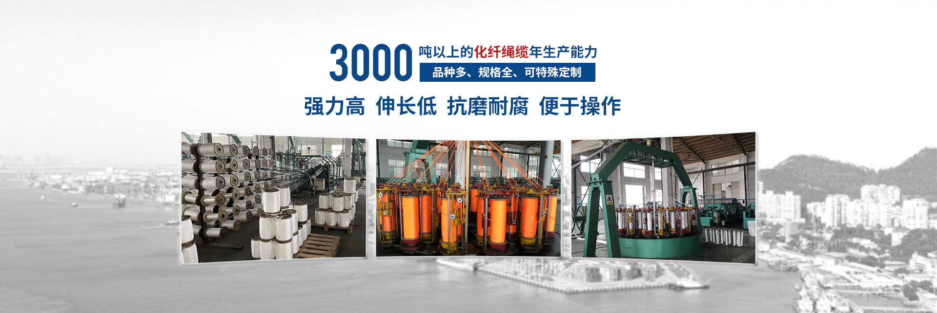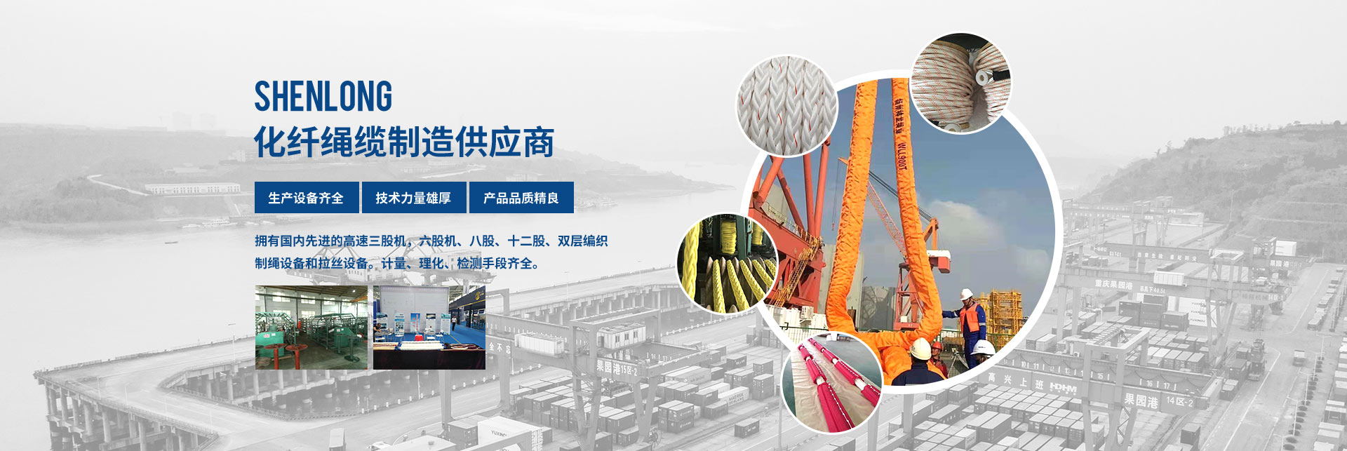揚(yáng)州神龍繩業(yè)有限公司,位于江蘇中部古城揚(yáng)州北首,古運(yùn)河畔,中國(guó)“荷藕之鄉(xiāng)”-寶應(yīng)城西工業(yè)集中區(qū),該園區(qū)是省市中小企業(yè)創(chuàng)業(yè)示范基地、揚(yáng)州市優(yōu)化發(fā)展園區(qū)。揚(yáng)州神龍繩業(yè)有限公司是一現(xiàn)代化新型化纖繩纜的生產(chǎn)企業(yè)。交通便捷,京杭大運(yùn)河和京滬高速穿境而過(guò),環(huán)境生態(tài)優(yōu)美。截止2022年12月底,公司實(shí)際擁有固定資產(chǎn)5200多萬(wàn)元,占地建筑面積20000多平方米,標(biāo)準(zhǔn)廠房四棟及水電辦公設(shè)施齊全,機(jī)構(gòu)設(shè)置:經(jīng)理辦、技術(shù)質(zhì)量部、生產(chǎn)部、銷(xiāo)售部、綜合部。公司聘用10名繩纜行業(yè)高級(jí)技術(shù)人員,技術(shù)力量雄厚。擁有國(guó)內(nèi)高速三股機(jī),六股機(jī)、八股、十二股、雙層編織制繩設(shè)備和拉絲設(shè)備。計(jì)量、理化、檢測(cè)手段齊全。企業(yè)已獲得GB/T19001-2016/ISO19001:2015質(zhì)量體系認(rèn)證證書(shū)及中國(guó)船級(jí)社(CCS)、法國(guó)船級(jí)社(BV)、挪威德國(guó)船級(jí)社(DNV.GL)、日本(NK)工廠認(rèn)可證書(shū)。于2016年12月取得了解放軍裝備承制單位注冊(cè)證書(shū),獲得了高新技術(shù)產(chǎn)品的認(rèn)定證書(shū)、江蘇省民營(yíng)科技企業(yè)稱(chēng)號(hào),并獲得了實(shí)用型專(zhuān)利,“高強(qiáng)度無(wú)捻絲滌綸樹(shù)脂插編復(fù)合繩”,專(zhuān)利號(hào)“ZL 2017 2 0221636.8”和多股牽引繩纜、高強(qiáng)度無(wú)捻絲海洋勘探耐磨腐防蝕止合成纖牽引繩高新技術(shù)產(chǎn)品認(rèn)定證書(shū)。為祖國(guó)的邊防和航運(yùn)業(yè)貢獻(xiàn)一點(diǎn)力量。按國(guó)際標(biāo)準(zhǔn)生產(chǎn)“繩龍”牌化纖繩纜,品種多、規(guī)格全、年生產(chǎn)能力達(dá)3000噸以上。主要生產(chǎn)錦綸(聚酰銨)、丙綸(聚丙烯)、滌綸(聚酯),超高分子聚乙烯等系列產(chǎn)品,結(jié)構(gòu)有;三股、四股、六股、八股、十二股、雙層編織繩索。規(guī)格從Ф4mm~Ф120mm系列產(chǎn)品任你選擇。可根據(jù)客戶(hù)需要生產(chǎn)特殊用途規(guī)格繩索。具有強(qiáng)力高,伸長(zhǎng)低、抗磨耐腐,便于操作。產(chǎn)品性能指標(biāo)均符合相關(guān)的國(guó)際標(biāo)準(zhǔn)和國(guó)家標(biāo)準(zhǔn)要求,廣泛應(yīng)用于遠(yuǎn)洋運(yùn)輸、船舶制造、漁業(yè)捕撈、港口作業(yè),國(guó)防軍工、石油勘探等領(lǐng)域,取得市場(chǎng)廣泛認(rèn)可和市場(chǎng)占有率。近年來(lái)本公司奉行“以質(zhì)為本,誠(chéng)信經(jīng)營(yíng),優(yōu)良服務(wù),顧客滿意”的宗旨,竭誠(chéng)為廣大用戶(hù)提供優(yōu)良產(chǎn)品和服務(wù)。推動(dòng)質(zhì)量管理的深入開(kāi)展,加強(qiáng)員工的質(zhì)量意識(shí),進(jìn)一步提高產(chǎn)品質(zhì)量,滿足市場(chǎng)和用戶(hù)的需求,為用戶(hù)服務(wù)。